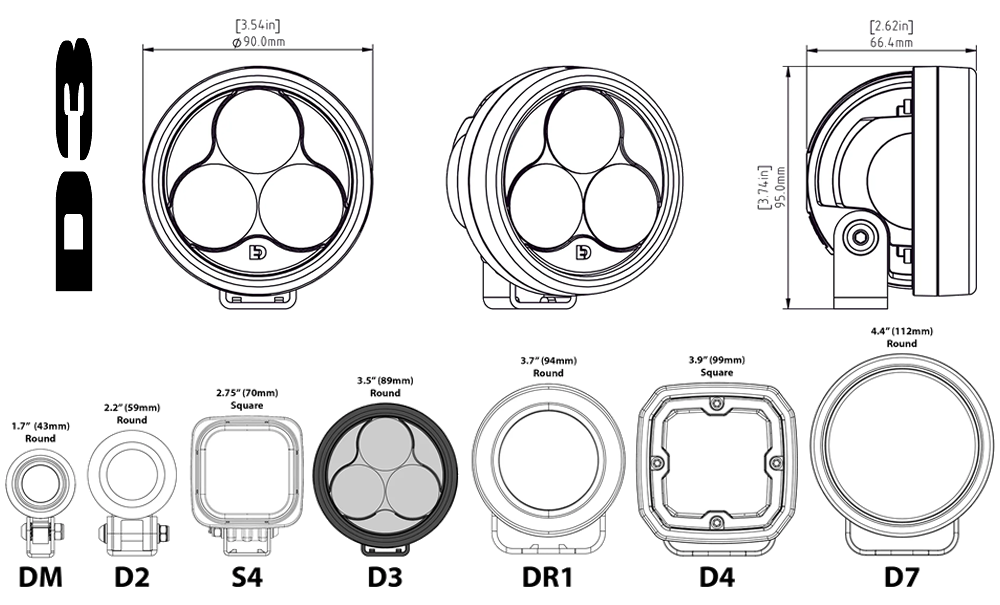 Nuestro D3 también está disponible con un haz antiniebla certificado por SAE y ECE para los conductores que buscan un haz antiniebla verdaderamente legal para la calle que sea súper amplio y tenga un "corte" horizontal nítido.