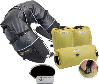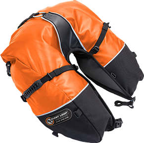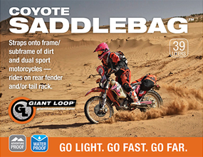 La Alforja Coyote es la versión actual del diseño original de la alforja Giant Loop Saddlebag de doble deporte con forma de herradura