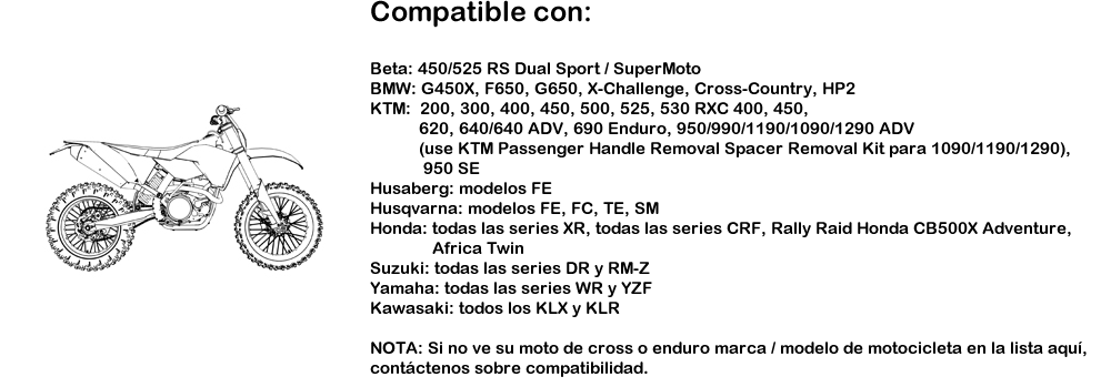 en el guardabarros trasero y / o el portón trasero de prácticamente cualquier moto de cross, dual sport o enduro. No se requieren