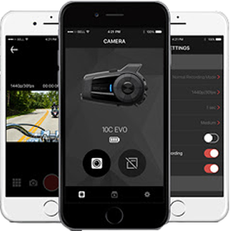 Conectando 10C EVO con la aplicación Sena Headset App (para Android y iPhone) puede configurar sus ajustes de comunicación y acceder a la guía rápida interactiva de Inicio. Con Sena Camera App puedes previsualizar tus vídeos en tu teléfono o descargarlos directamente, sólo tienes que conectar 10C EVO a tu smartphone vía WiFi. Esta aplicación también le ayudará a configurar con precisión los ajustes de grabación, como el modo de vídeo, la resolución, la sensibilidad del micrófono o la posibilidad de grabar audio directamente desde el intercomunicador.