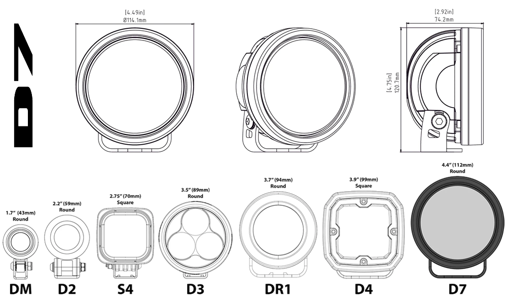 Con más de 7500 lúmenes, la cápsula de luz DENALI D7 es una de las luces LED más brillantes de menos de 4,5 pulgadas. La cápsula de luz cuenta con siete LED de 10 vatios de alta intensidad que se enfocan a través de una óptica patentada de una sola pieza que fue diseñada específicamente para crear un haz puntual de cuerpo completo que puede alcanzar más de 1200 pies con un lux. El robusto disipador de calor y Active Thermal Management™ trabajan juntos para mantener esta lámpara de alta potencia lo suficientemente fría para mantener la máxima salida de luz cuando más la necesita.