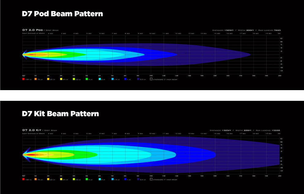 ¿Aún no estás convencido de que esta luz sea lo suficientemente brillante? Un pod D7 eclipsará siete luces D2 y produce más del doble de la salida de luz de nuestro bestial pod de luz D4.