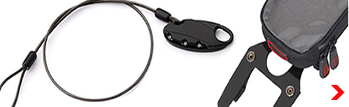 Mejore individualmente su bolsa de depósito con accesorios tales como un soporte para mapa, cable de seguridad para equipaje de motocicleta, funda impermeable para tablet o bolsas interiores impermeables.